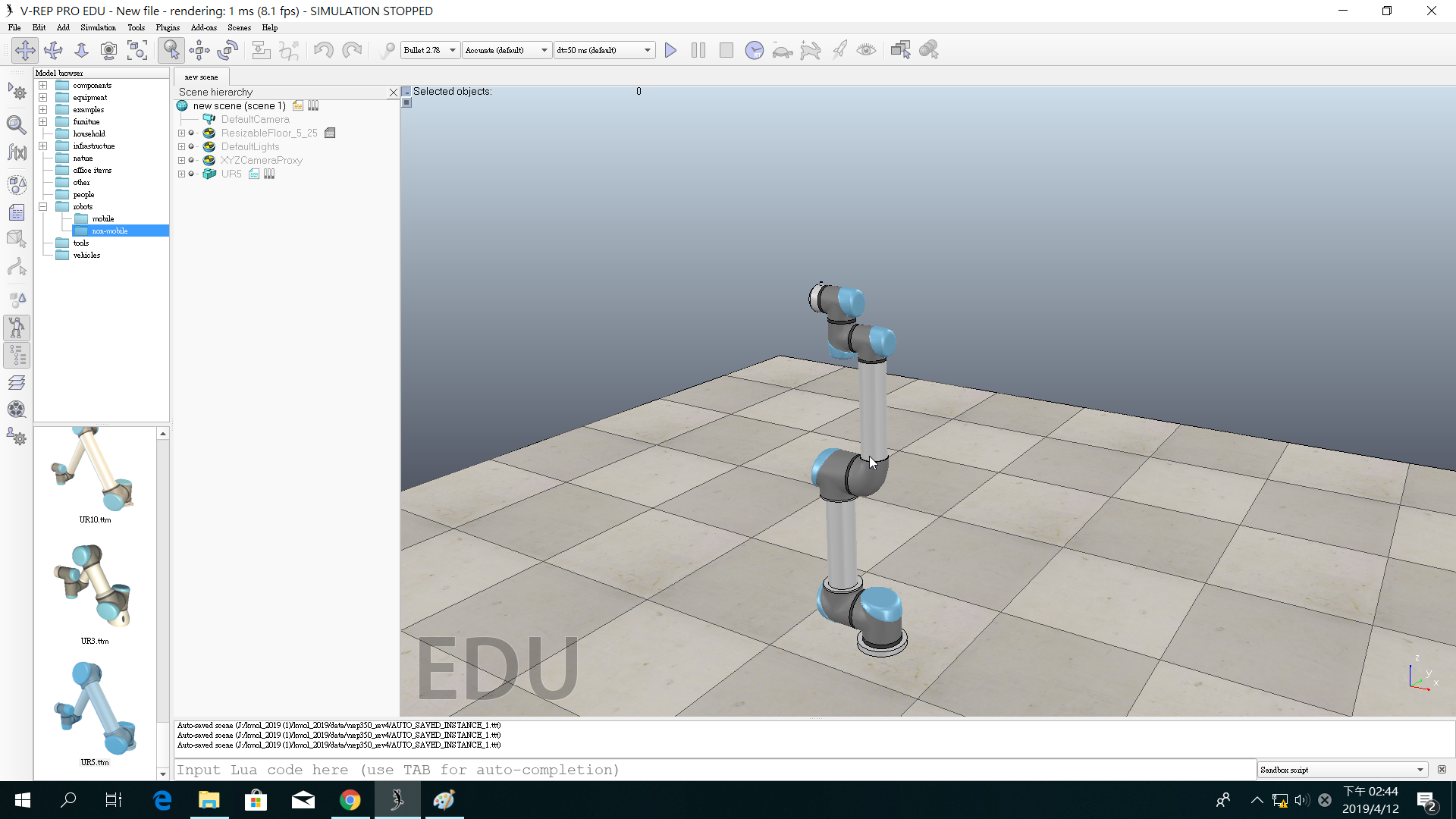 1.這週開始練習v-rep,因為要等手足球零件畫出來,所以先練習題目BubbleRob tutorial,內容包含叫出圓柱、改變感測器方向及感測器種類。