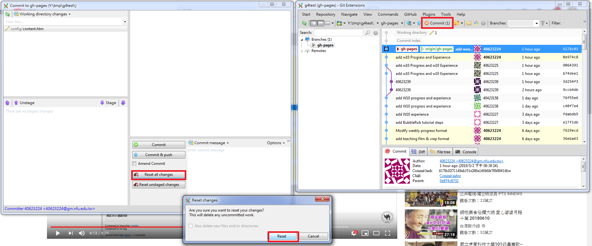 12.要checkout前commit必須是清空的狀態,否則無法進行checkout至先前版本,故要reset all changes