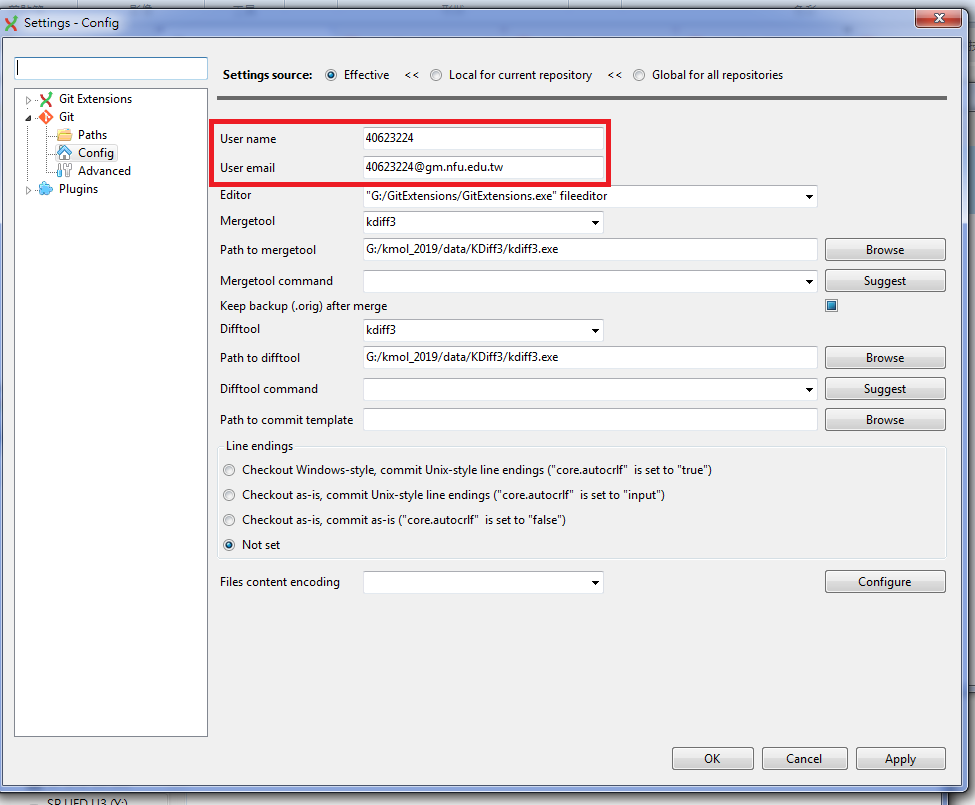 7.修改完成後再來是修改你的KDiff3,也是為了對應尋找目錄而設定